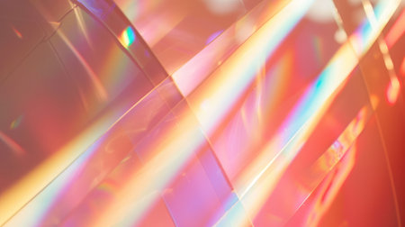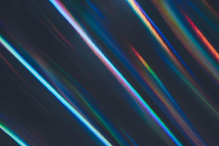 Iridescent light rays creating a vibrant overlay texture on a reflective surface