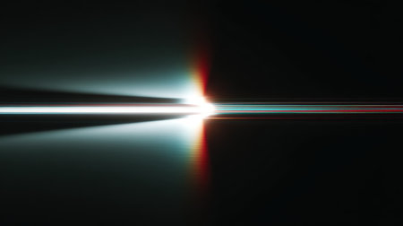 This image presents an abstract composition with vibrant light effects. It features colorful rays and lens flares against a dark backdrop. The visual style suggests a modern approach. Suitable for a range of creative and commercial applications such as design elements, backgrounds, or thematic illustrations.