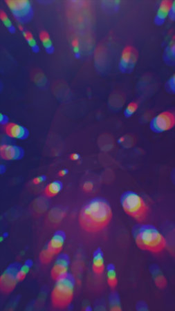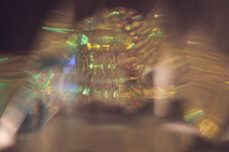 Blur defocused multicolored retro film lens flare bokeh, colorful rainbow crystal light leaks on black, vintage prism colors,