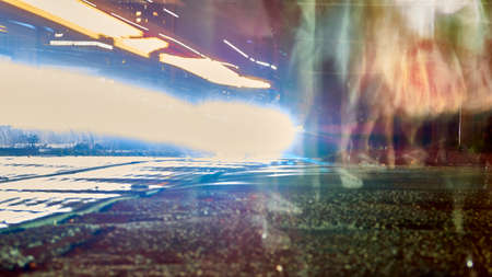 Leak cover. Astral beam. Night neon blur motion mystic.