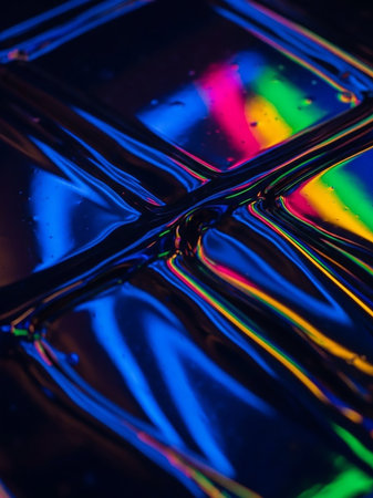 Refraction of light through glass with iridescent highlights. Space for text