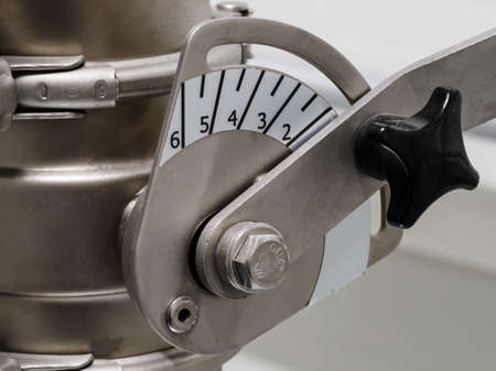 Macro image of the shutter speed ajdustment on a vintage range-finder camera