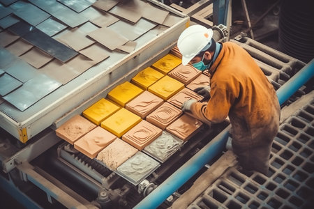 A captivating image capturing the dynamic action of crushed stones falling amidst a cloud of dust in a construction zone, highlighting the energy and disruption involved.