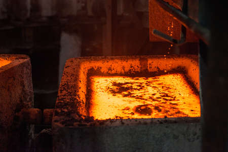 Blast furnace, cast iron production. Metal poured out of the metallurgical furnace