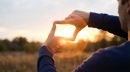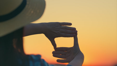 Framing Nature Showcasing Beautiful Hands Skillfully Capturing the Stunning Beauty of a Sunset