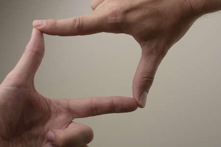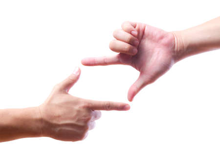 Hand symbol that means frame on white background. Framing with two hands
