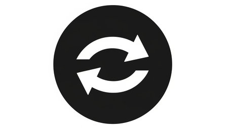 A white icon of two circular arrows, indicating refresh or sync, is presented within a black circle on a white background.