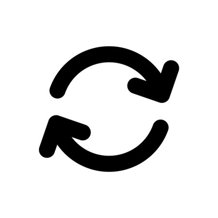 Black icon of two opposing curved arrows forming a cycle on a white background. Clear details and vibrant colo...