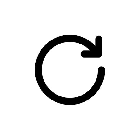 This minimalist black circular arrow icon symbolizes the refresh function in modern design. Ideal for use in user interfaces and applications, it represents motion and direction for seamless user interaction.