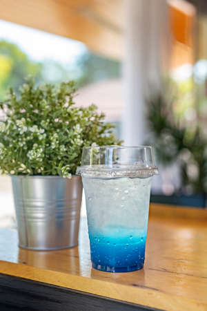 soft drink is poured into a glass of plastic,beverages for children and tourists,cold drinks to quench hot and thirsty at service point