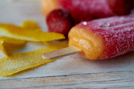 Youth ice pop from the freezer. with a touch of frost and ice. Refreshing in the heat .