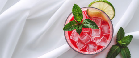AI Generated. Red Blended Drink with Lime and Mint Garnish