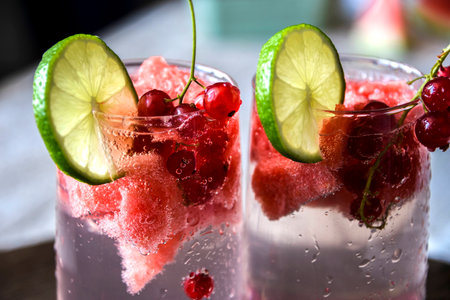 Refreshing drink from watermelon, concept of hot summer and healthy eating