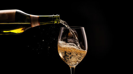 A glass of wine being poured into a wine glass. AI generative image.