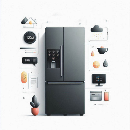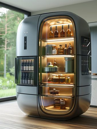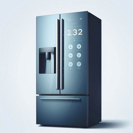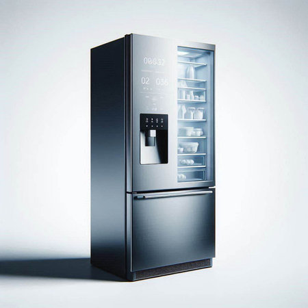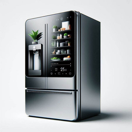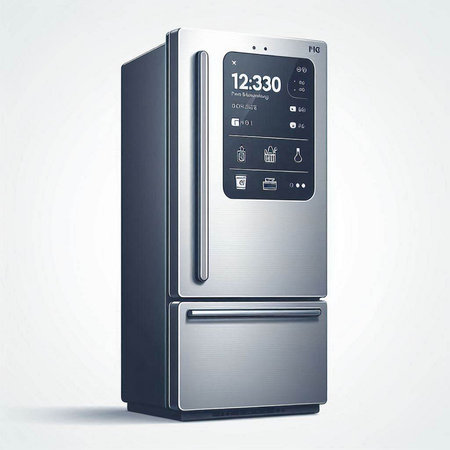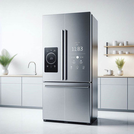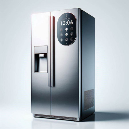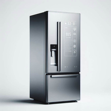 This modern refrigerator features a sleek design with energy-efficient technology and a user-friendly touch screen, perfect for contemporary kitchens and smart homes.