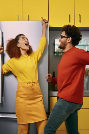 Generative AI : Happy young couple celebrating moving new home Boyfriend and girlfriend having a romantic lunch relocating into new house Domestic life concept