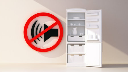 concept of refrigerator noiselessness. silent door opening. 3d rendering