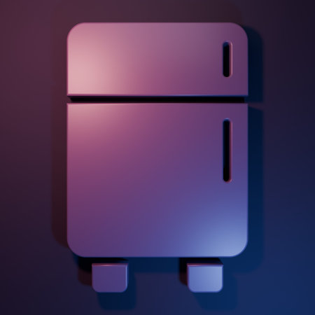 Purple Refrigerator icon isolated on purple-blue background. Fridge freezer refrigerator. Household tech and appliances. Minimalism concept. 3D render illustration.