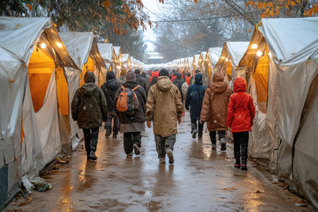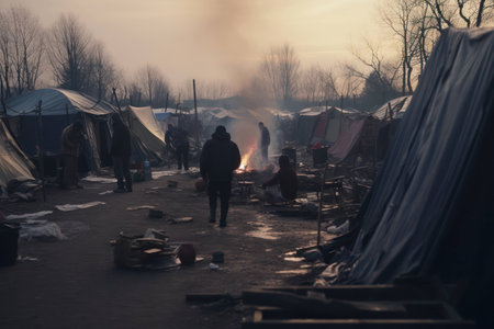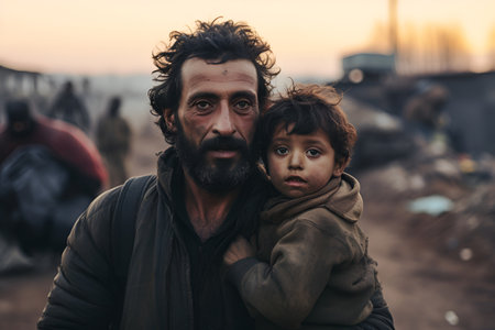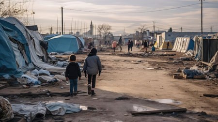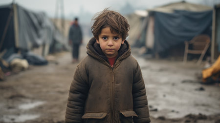 Refugee crisis: impact of war, climate change, political unrest, revealing the humanitarian catastrophe with hungry children seeking refuge amidst a global demographic crisis emigrants camp.