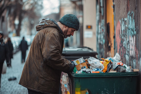 A dedicated individual engages in environmental cleanup, sorting through plastic waste and trash in an urban area, highlighting the need for sustainability.