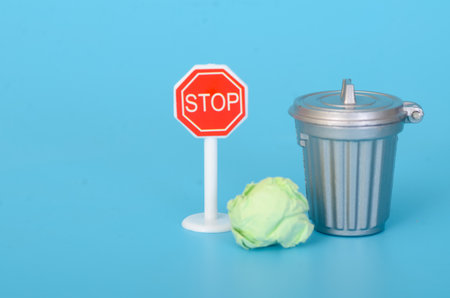 Environmental Awareness: Stop Sign, Trash, and Dustbin as Symbols of Cleanliness and Responsibility