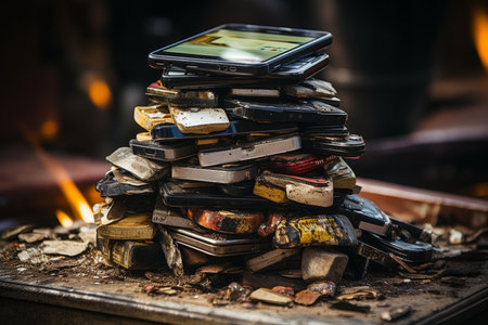 Garbage pile of renewable electronic hardware. Generative AI