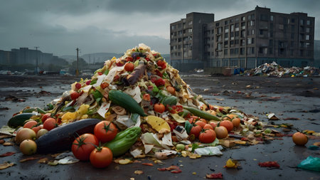 heaps of dirty garbage and waste in pile on soil overflowing garbage, created with generative ai