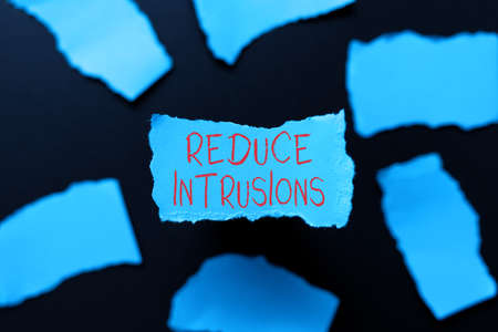 Sign displaying Reduce Intrusions. Conceptual photo a strategy to reduce and monitor false alarm rates Abstract Focusing On A Single Idea, Solving Main Problem Concept
