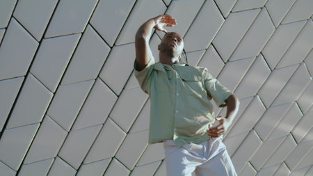Young stylish confident happy handsome. Dancing.