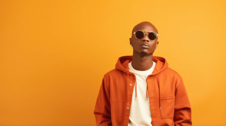 Young african american man wearing a sunglasses against orange background.