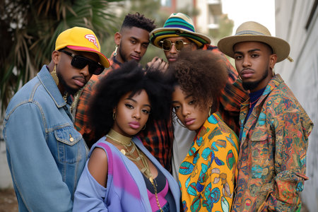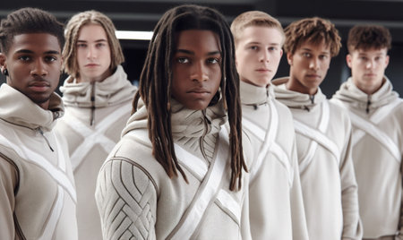fashion man lifestyle young studio group black portrait attractive trendy friends. Generative AI.