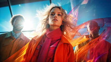 Three diverse models pose confidently in an urban setting, showcasing modern fashion styles. The vivid graffiti and textured brick background add an artistic flair to their look.
