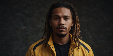 AI Generated. A man with dreadlocks wearing a black and yellow jacket