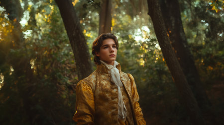 Generative AI Image of A Prince in a Magical Forest Surrounded by Ancient Trees
