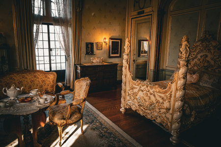 Discover a breathtaking vintage parlor filled with elegant furniture, ornate decor, and soft colors that create a cozy and sophisticated atmosphere.