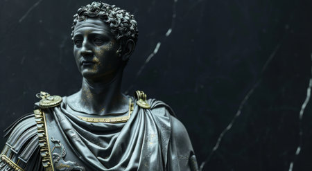 ancient roman emperor statue in dark lighting