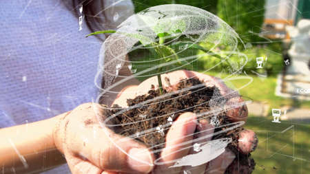 Planting a plant in the ground. The concept of natural farming. Natural natural fertilizers. quality formula. Healthy food.