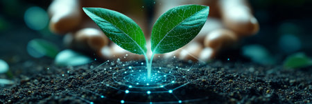 Hand holding seedling, nurturing growth for new life and success generated by artificial intelligence