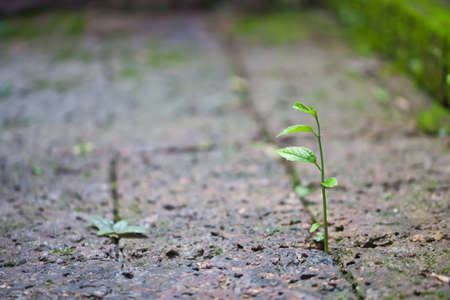 Little plant grow up on stone floor