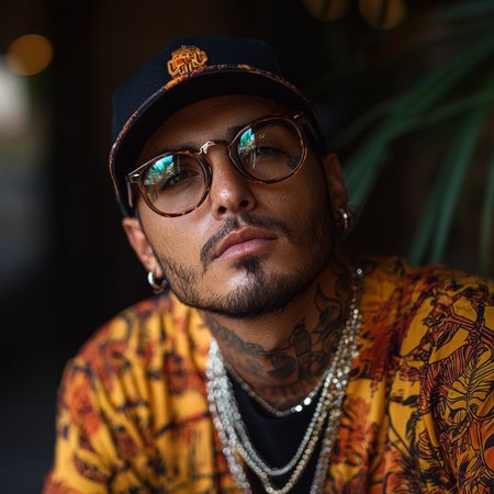 A Spanish cool man with tattoos and sunglasses