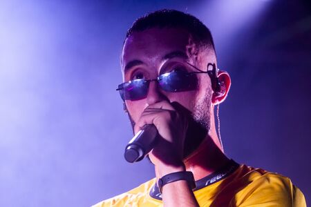 FARO, PORTUGAL: 6th SEPTEMBER, 2019 - Rap singer, Biya, performs on Festival F, a big festival on the city of Faro, Portugal.