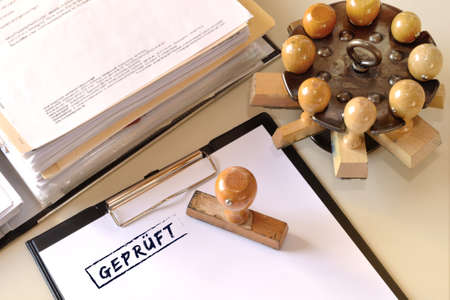 Office with testid stamp and folder open