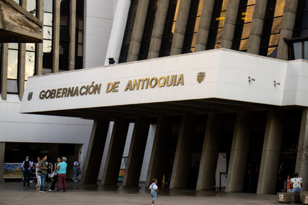 Medellin, Colombia - January 18, 2024: Entrance to the Antioquia Government building at the La Alpujarra Administrative Center in the city of Medellin.