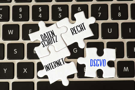 A computer, privacy code and puzzle pieces with the words Privacy, Law and Internet