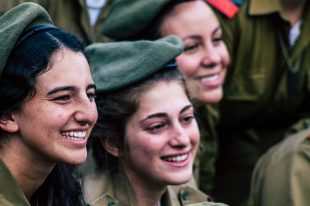 Jerusalem Israel December 11, 2019 View of Israeli soldiers having fun front the Western Wall of the old city of Jerusalem on the evening