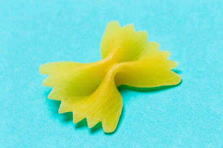 Close up pattern of noodles farfalle also known as bow-tie or butterfly pasta placed on colorful background.