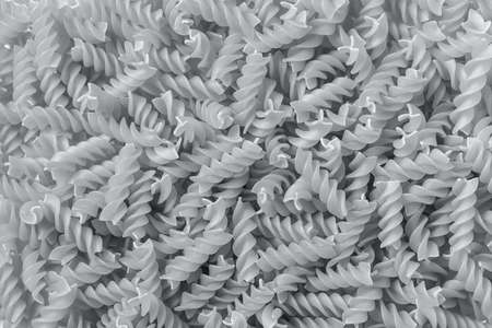 Close up view at the fusili pasta. Macro of Fusilli pasta in a bowl.