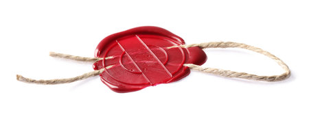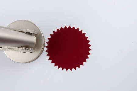 Red wax seal isolated on white background. 3d illustration. Top view.