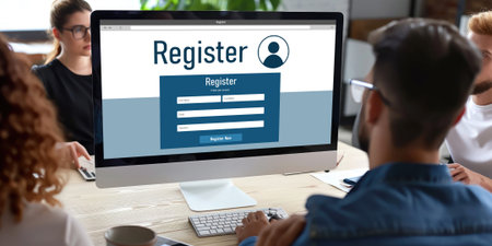 Businesswoman's Hand Filling Online Registration Form On Laptop