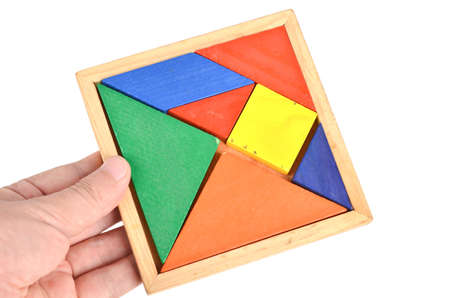 Man holding wooden empty cube.